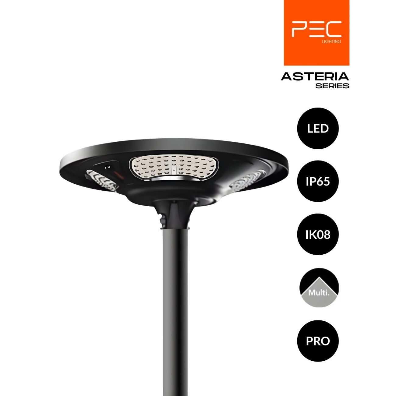 La série ASTERIA de PEC Lighting est un luminaire extérieur au design compact et élégant, idéal pour parcs, allées et espaces urbains. Elle diffuse une lumière homogène et confortable, créant une ambiance sécurisante. Moderne et durable, ASTERIA allie esthétisme et performance pour l’éclairage public.