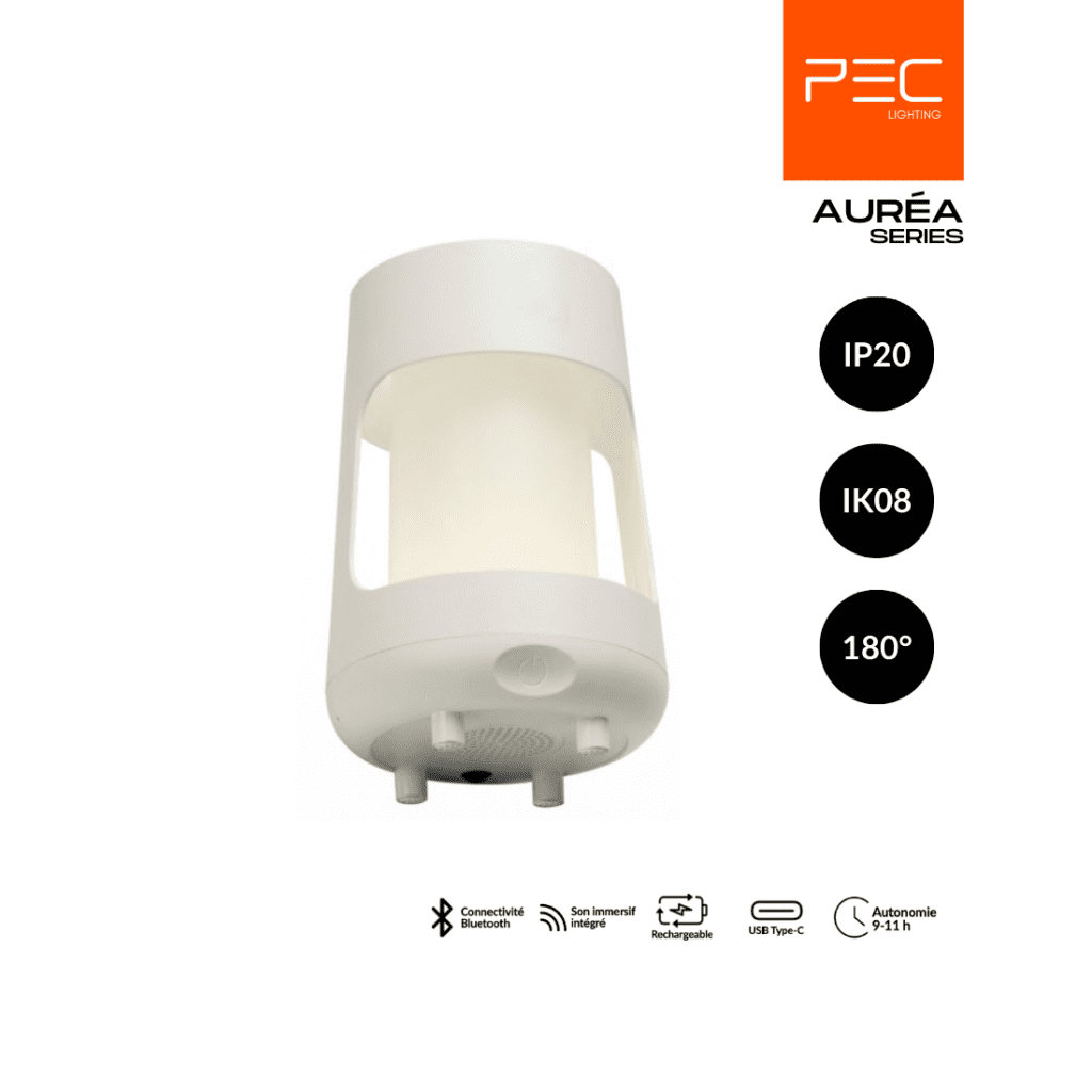 La série AURÉA – Audio Light Experience transforme chaque instant en expérience sensorielle complète. Alliant éclairage LED performant et haut-parleur Bluetooth intégré, elle crée une atmosphère immersive adaptée aux moments de détente comme aux ambiances conviviales.