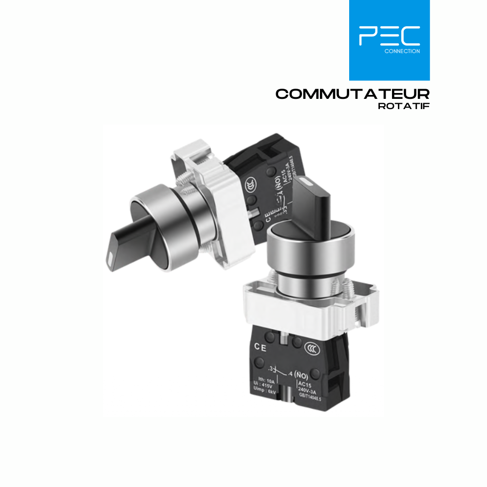Disponible en versions 2 ou 3 positions, avec configurations 1NO ou 1NO + 1NC, il s’adapte parfaitement aux besoins des installations électriques et des automatismes.