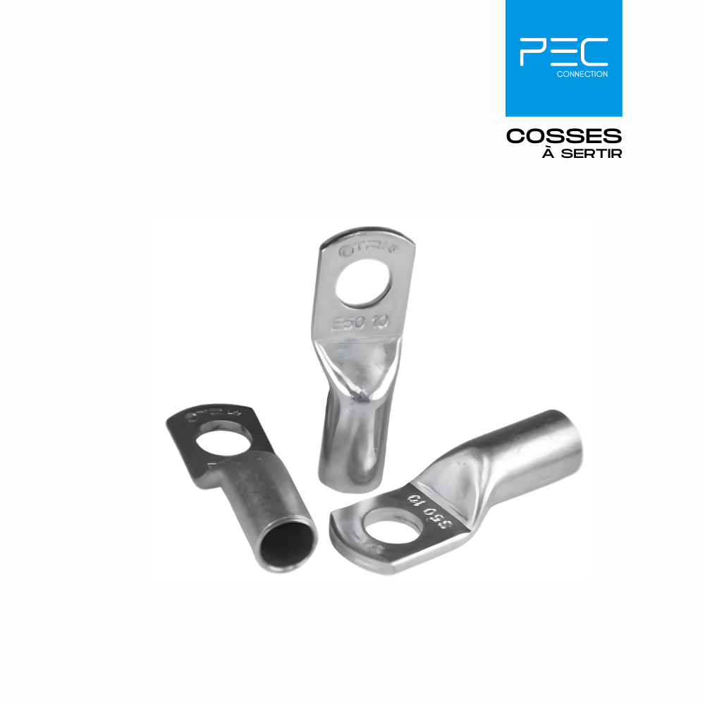 Les cosses à sertir sont spécialement conçues pour assurer une connexion fiable et durable des conducteurs en cuivre aux équipements électriques. Elles garantissent une excellente conductivité électrique et une sécurité optimale dans les installations basse tension, industrielles et tertiaires.