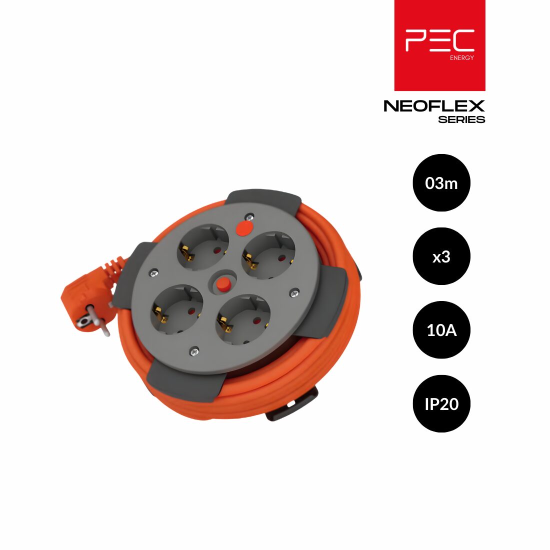 La série NEOFLEX a été conçue pour répondre aux besoins d’alimentation électrique domestique au quotidien. Compact et léger, cet enrouleur de 3 mètres s’intègre facilement dans tous les environnements intérieurs : maison, bureau, atelier léger ou espace de travail.