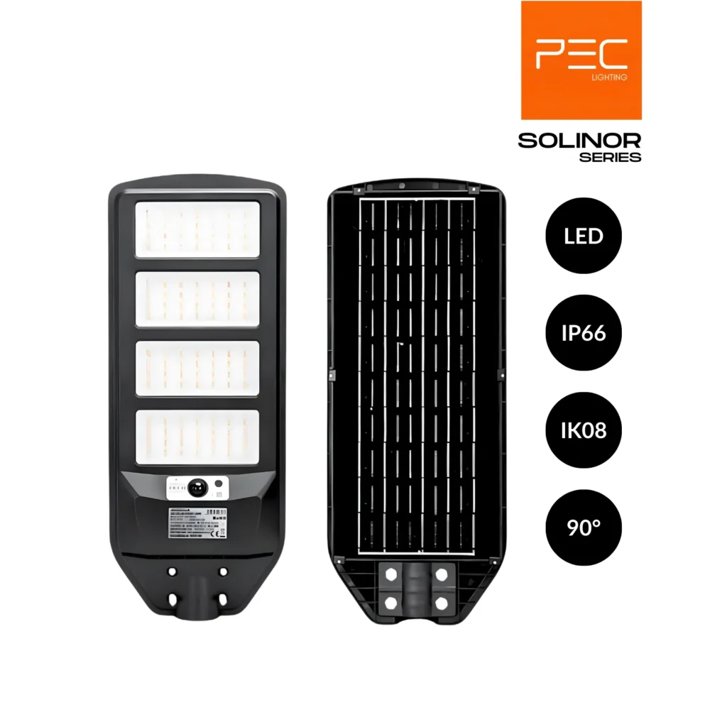 Enfin, alimentée par énergie solaire, la série SOLINOR permet de réduire les coûts d’installation et d’exploitation tout en offrant une autonomie fiable au quotidien. C’est une solution idéale pour les projets d’éclairage public durable, les communes et les promoteurs immobiliers recherchant performance et rentabilité.